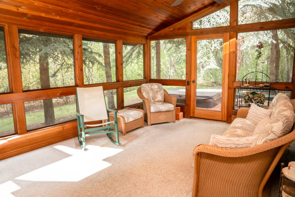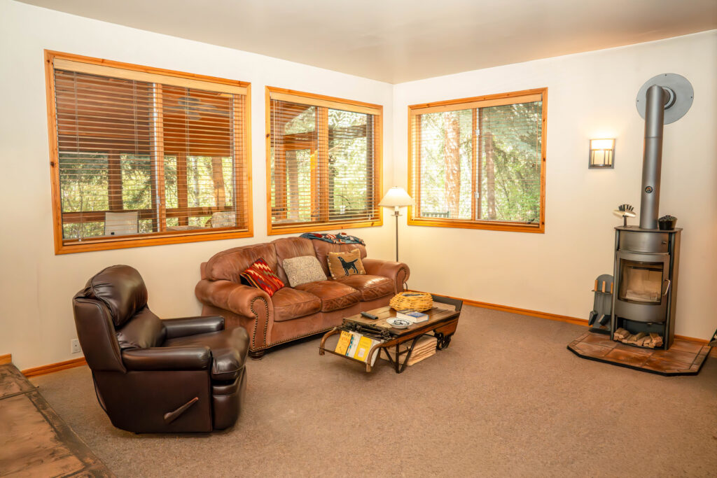 Radiant heat and scandinavian-style wood stove create a cozy environment in the winter, while the wood-burning fireplace adds to the ambiance. Listen to the leaves rustle from the screened-in porch and bask in the easy access to the Big Wood River.